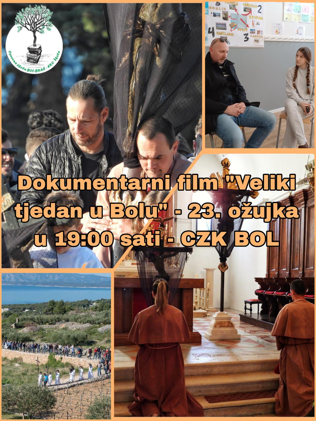 S velikim zadovoljstvom vas pozivamo na projekciju dokumentarnog filma “Veliki tjedan u Bolu” u ponedjeljak, 23. ožujka 2026. godine u 19:00 sati u Centru za kulturu Bol.